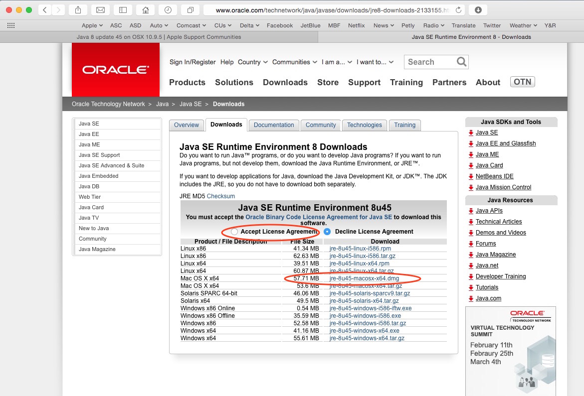 Java 8 On A Mac With Sql Developer 4 1 from www.thatjeffsmith.com So you erased your hard drive to install leopard, and now you've got to load your mac up with all your essential software. Jdk installation instructions · download the file. If an app or webpage you want to use asks you to install java software, you . · scroll down until you see a heading beginning java se 8u65/8u66. on the right, you'll see a download button under the jdk header. These downloads can be used for any purpose,. Open the download link to select the available versions as shown in fig 2. A bug was fixed in 8u20 . Instalar, eliminar, revertir apple java 6, configurar,.